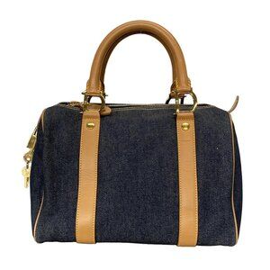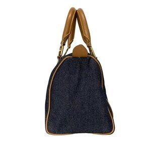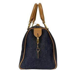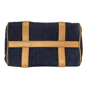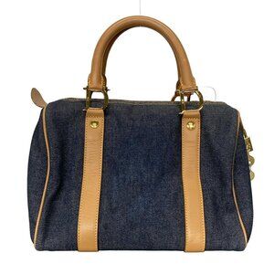 Auth DIOR/ChristianDior - Navy Light Brown Denim Leather Handbag