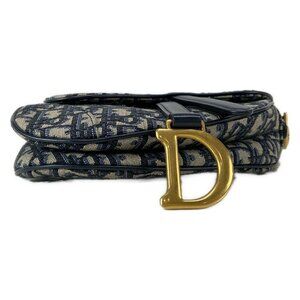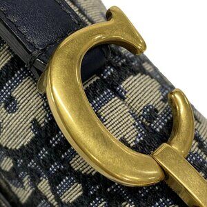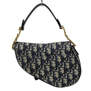 Auth DIOR/ChristianDior Saddle Bag Navy Cream Blue Jacquard Leather Handbag