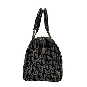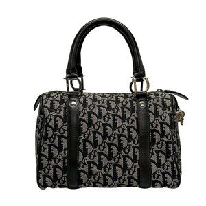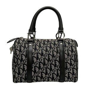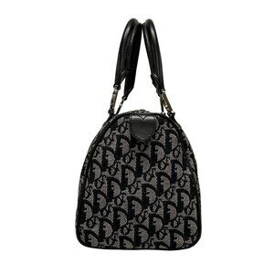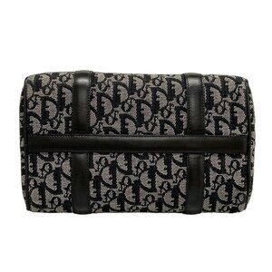 Auth DIOR/ChristianDior Trotteur Black Cream Jacquard Leather Handbag
