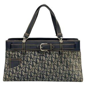 Auth DIOR/ChristianDior Trotteur Navy Cream Jacquard Leather Handbag