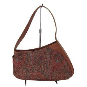Auth ETRO - Brown Red Multi Jacquard Leather Shoulder Bag