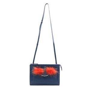 Auth FENDI Bugs Monster Crossbody Shoulder Bag Navy/Red Leather/Fur - h30835a