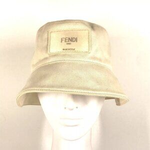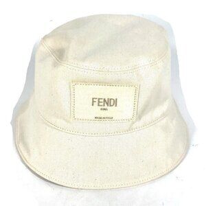Auth FENDI FXQ801 logo bucket hat bob hat cotton Beige