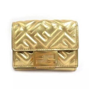 Auth FENDI Trifold Wallet Gold Leather - h30934g