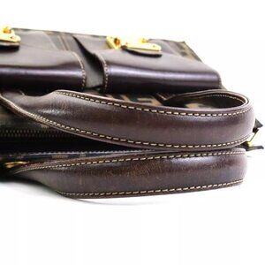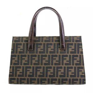 Auth FENDI Zucca Handbag Brown Canvas/Leather/Goldtone