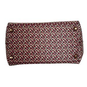 Auth FURLA - Red Dark Brown Khaki Leather Handbag