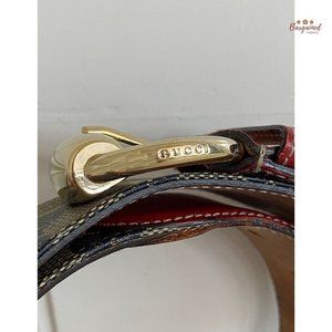 Authentic GUCCI Beige/Blue/Red GG Crystal Coated Canvas Horsebit Buckle Belt 85/34