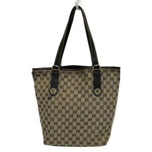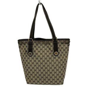 Auth GUCCI Charmy/GG 153009 Beige Dark Brown Jacquard Leather - Tote Bag