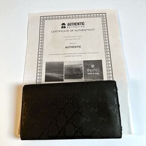 Auth GUCCI GG Guccissima Calf Skin Black Leather Long Wallet 245908 with COA