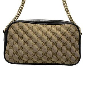Auth GUCCI GG Marmont 447632 Beige Dark Brown Black Jacquard Leather