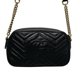 Auth GUCCI GG Marmont 447632 Black Leather - Shoulder Bag
