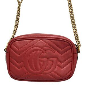 Auth GUCCI GG Marmont Mini Camera Bag 448065 Red Leather Shoulder Bag