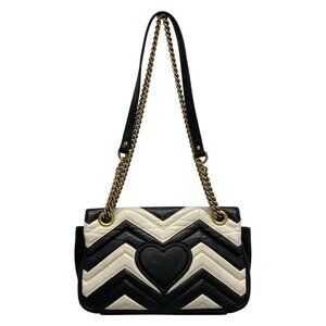 Auth GUCCI GG Marmont Quilting Small Shoulder Bag 443497 Black White Leather