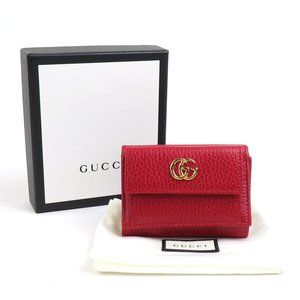 Auth GUCCI GG Marmont Trifold Wallet Red Leather - h29846f