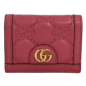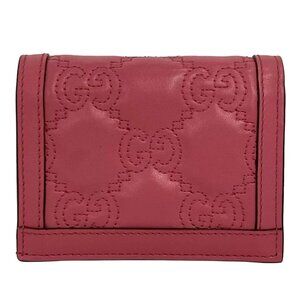 Auth GUCCI GG Matelasse Card Case Wallet Pink Leather Bifold Wallet 613-101224