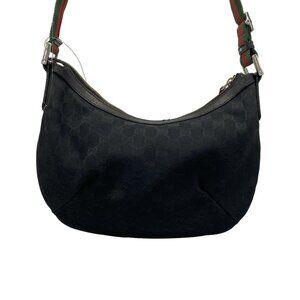 Auth GUCCI GG Pattern, Shelly (Web) 181092 Black Green Red Jacquard Leather