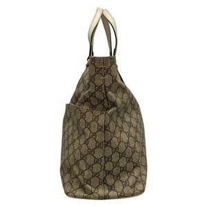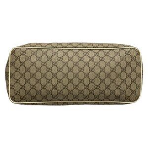 Auth GUCCI GG Plus/GG Supreme 457356 Dark Brown Beige Cream PVC Leather Handbag