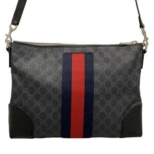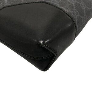 Auth GUCCI GG Supreme 474139 Dark Gray Black PVC Leather Shoulder Bag