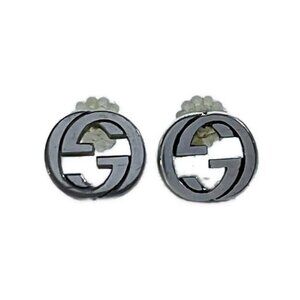Auth GUCCI Interlocking G Silver Earrings