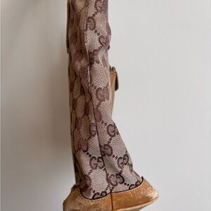 Auth GUCCI Shelly Line Tote Bag GG Canvas Leather Logo Brown Small