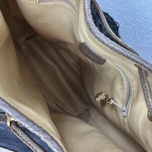 Auth Gucci GG Supreme PVC x Leather Beige Drawstring Shoulder Bag