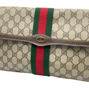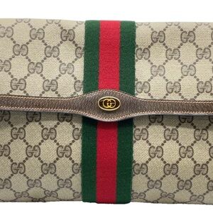 Auth Gucci GG Supreme Sherry Line PVC Clutch Bag