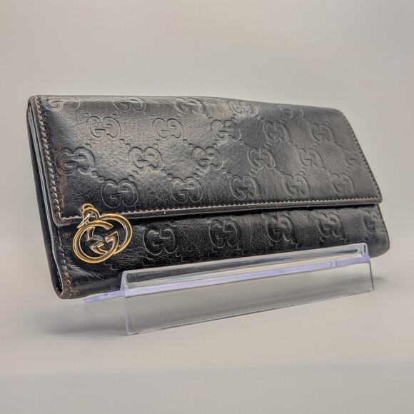 Gucci Guccissima Long Wallet in Dark Brown & Gold w/ Charm and Box. Giftable item with box and COA included.