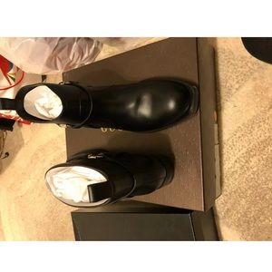 NIB Authentic Gucci women black leather ankle boot size 40 9.5 10 WOW Classic, Saks receipt available upon request