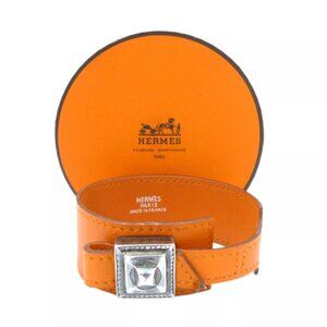 Auth HERMES Artemis Touareg Bracelet Bangle E in Square Orange Leather