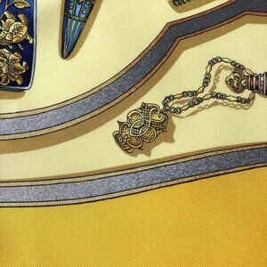 Auth HERMES Carre 90 - Light Yellow Dark yellow Multi Scarf