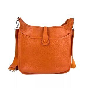 Auth HERMES Evelyne III PM Shoulder Bag Orange/Silver Taurillon Clemence - n1127