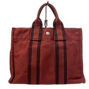 Auth HERMES Fourre Tout Tote PM - Bordeaux Canvas None Tote Bag