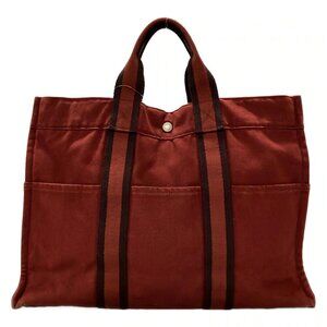 Auth HERMES Fourre Tout Tote PM - Red Canvas Tote Bag