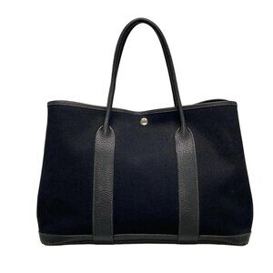 Auth HERMES Garden Party PM - Black Toile Officier Negonda Square J Tote Bag
