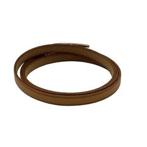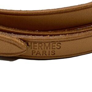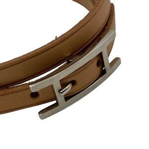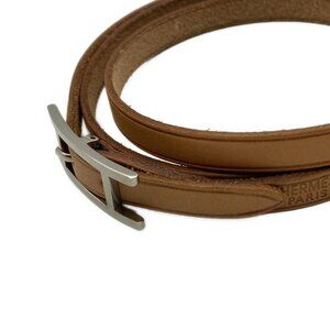 Auth HERMES Hapi 3 Light Brown Silver Leather Hardware Unclear Bracelet