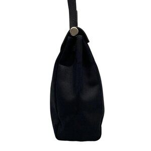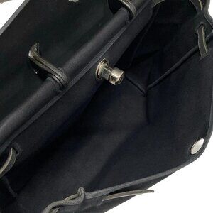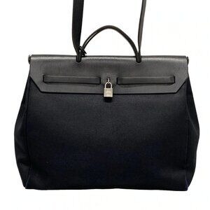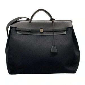 Auth HERMES Her Bag MM - Black Toile Officier Box Calf Square H Handbag