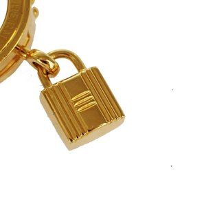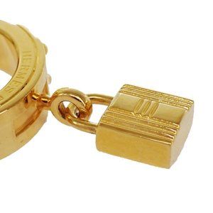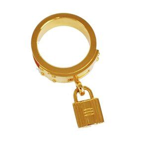 Auth HERMES Kelly Cadena Motif Scarf Ring Red Exotic Leather Gold Accessory