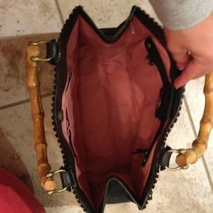 Authentic Isabella Fiore with bamboo handles, Black and Tan beading in bamboo pattern on outside. Pink interior.