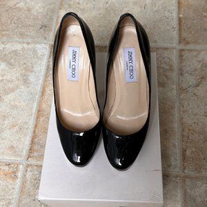 Auth. Jimmy Choo Cosmic Pump Black Patent Leather Platfrom High Heel 38 1/2