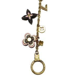 Auth LOUIS VUITTON Bag Charm Chain Fleur Du Monogram M63086 Gold Cream Monogram