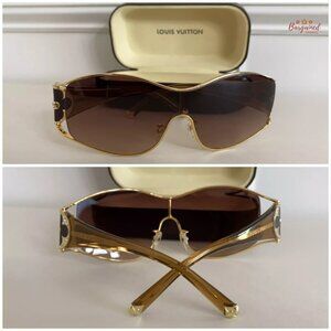 Authentic LOUIS VUITTON Brown Gold Speckling Metal Frame Oversized Lens Monogram Sunglasses