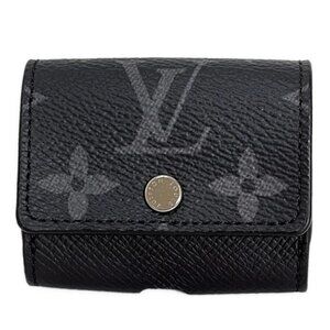 Auth LOUIS VUITTON LV Earphone Pouch Noir Monogram Eclipse (canvas)
