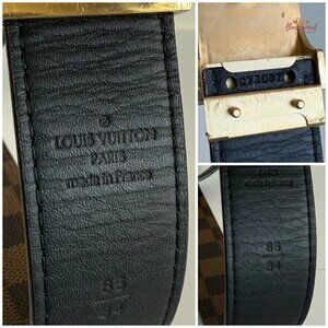 Auth Louis Vuitton Brown Damier Coated Canvas Leather Gold Buckle Belt 85/34