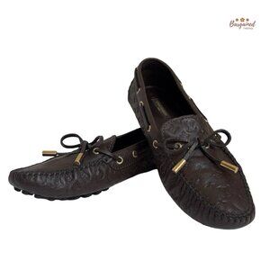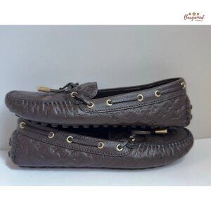 Auth Louis Vuitton Gloria Brown Monogram Leather Loafers EU N37 US 6