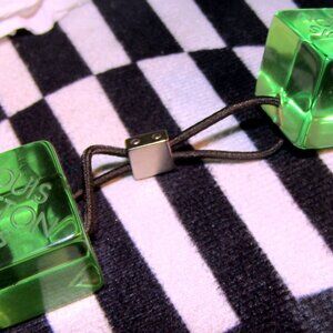 Hi, I am selling a, Guaranteed as Described, Authentic Louis Vuitton Hair Cube Hair Tie Neon Green & Neon Orange Hair Tie with Bag, In Excellent Condition.
