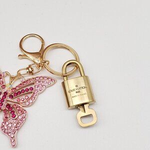 Auth Louis Vuitton Lock & Key with Unbranded Butterfly Charm, Keychain 090925