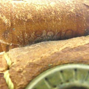Outside: Some rubs, stains, cracks on leather parts, string and handle.