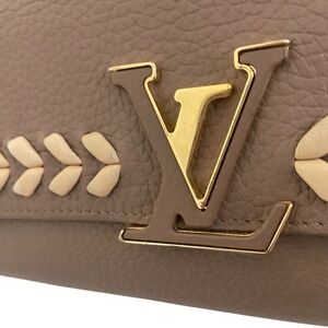 Louis Vuitton wallet, LV Capucines wallet, LV braided wallet, LV chevron detail, Taurillon leather wallet, LV long wallet, neutral LV wallet, taupe LV wallet, purple LV wallet, quiet luxury designer wallet, rare LV color, authentic Louis Vuitton, Capucines collection collector