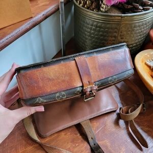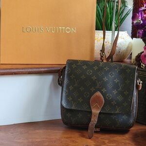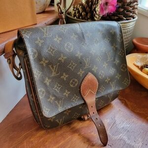 vintage 1986 Cartouchiere bag, comes with Louis Vuitton box, tissue paper, and ribbon (purchased separately). this is a vintage 30+ year item so it does have some vintage smell, minor canvas cracking, leather has patina, please see pictures for details.