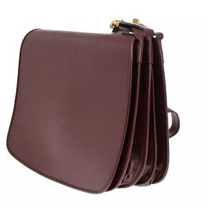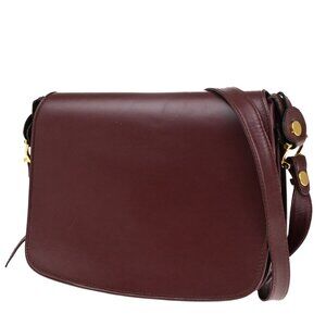 Auth MUST DE CARTIER 2C Logo Crossbody Shoulder Bag Leather Bordeaux GHW